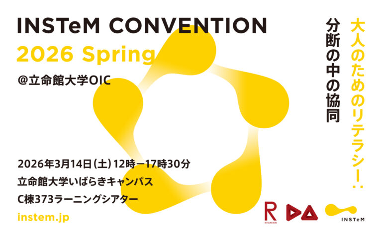 一般財団法人INSTeMは、2026年3月14日、立命館大学大阪いばらきキャンパス(OIC)で、同大学に新設予定のデザイン・アート学部との共催により、第3回INSTeMコンベンション「大人のためのリテラシー:分断の中の協 … 続きを読む INSTeM Convention 2026 一般参加者募集!